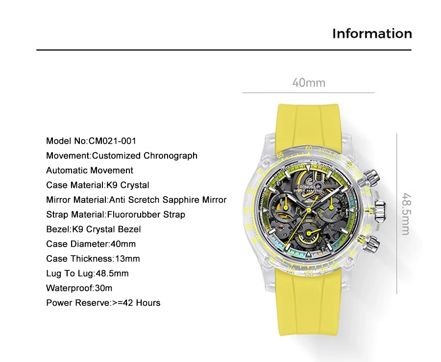 Movement:Customized Chronograph Automatic Movement