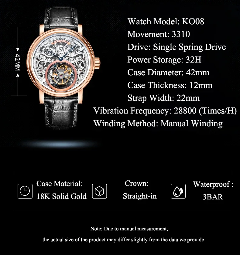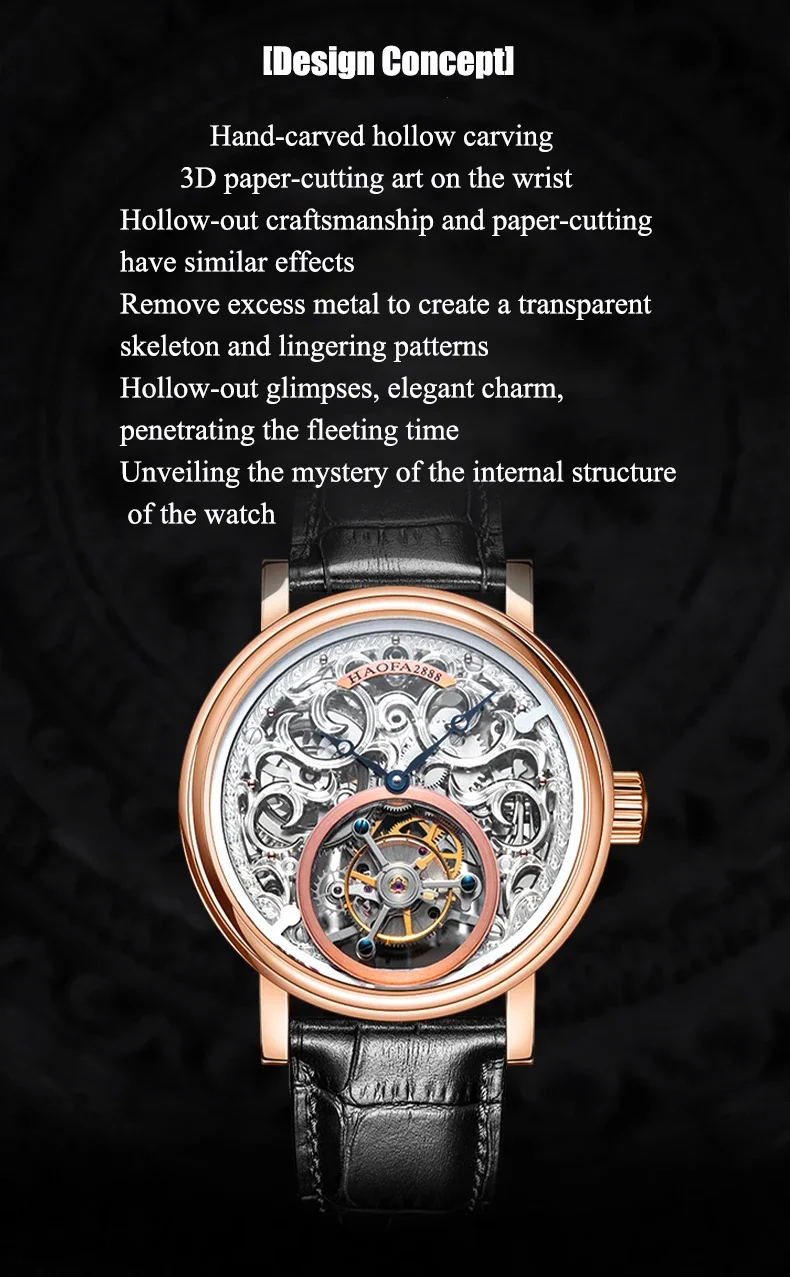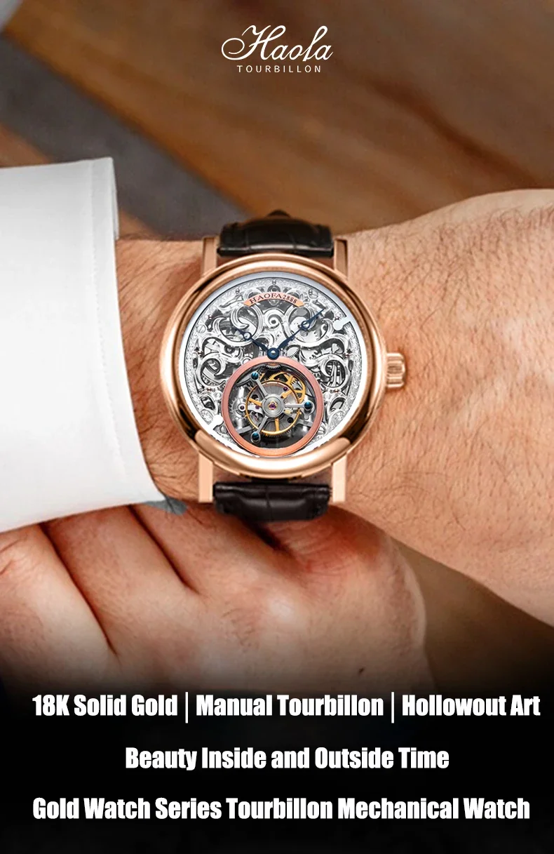 Haofa 18K Gold Tourbillon reloj hombre K008