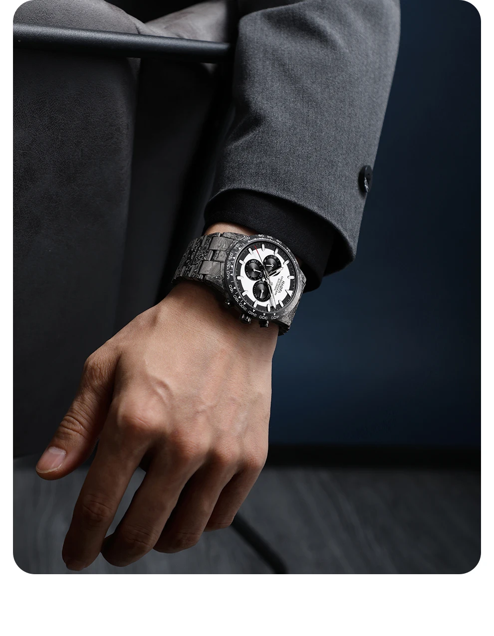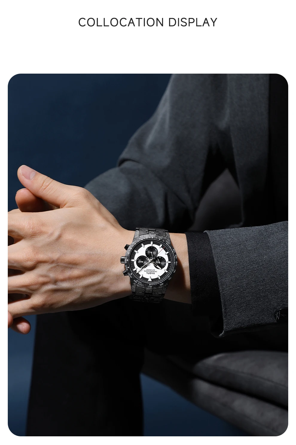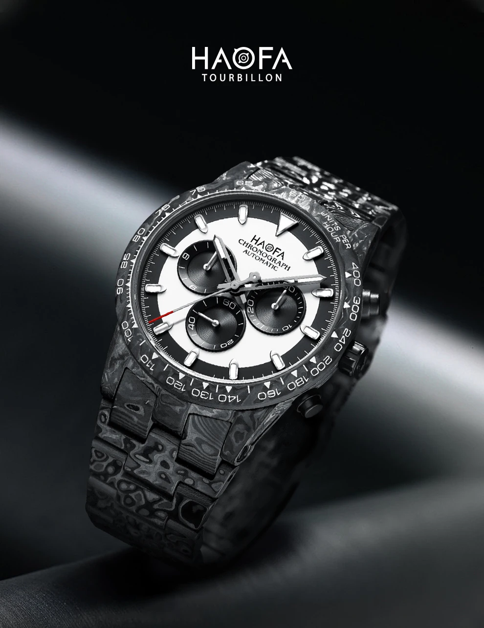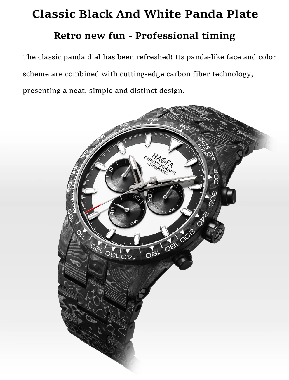 The classic panda dial is back with a fresh look, its panda-like face and color scheme blending seamlessly with cutting-edge carbon fiber technology for a clean, sophisticated, and layered design.