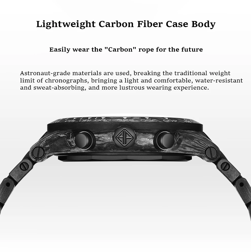 Aerospace-grade materials revolutionize the traditional weight limitations of chronographs, bringing a lightweight, comfortable, waterproof, sweat-wicking, and long-lasting shine experience.